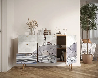 Комод "Berber" удлиненный с бутылочницей 22 принт арт BB15/Print_22