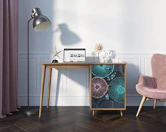 Стол рабочий "Berber" принт 32 с одной тумбой арт BB31/Print_32