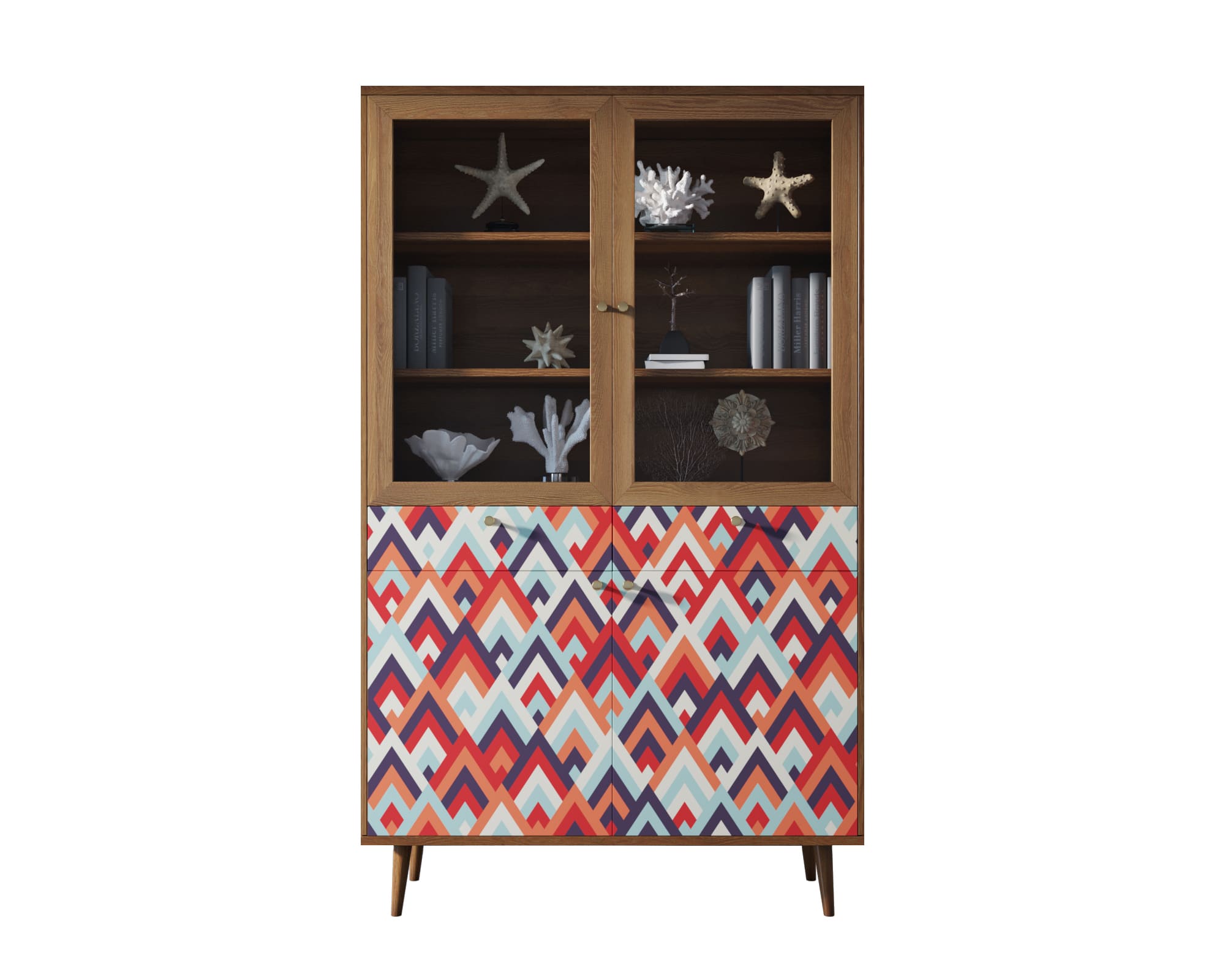 Буфет "Berber" имеет два выдвижных ящика на шариковых направляющих (могут быть заменены на доводчики по желанию). Низ буфета разделен на две секции, которые скрываются за двумя дверками, и полкой. Верхняя часть закрывается стеклянными дверцами, а на двух полках отлично расположится декор или кухонная утварь.