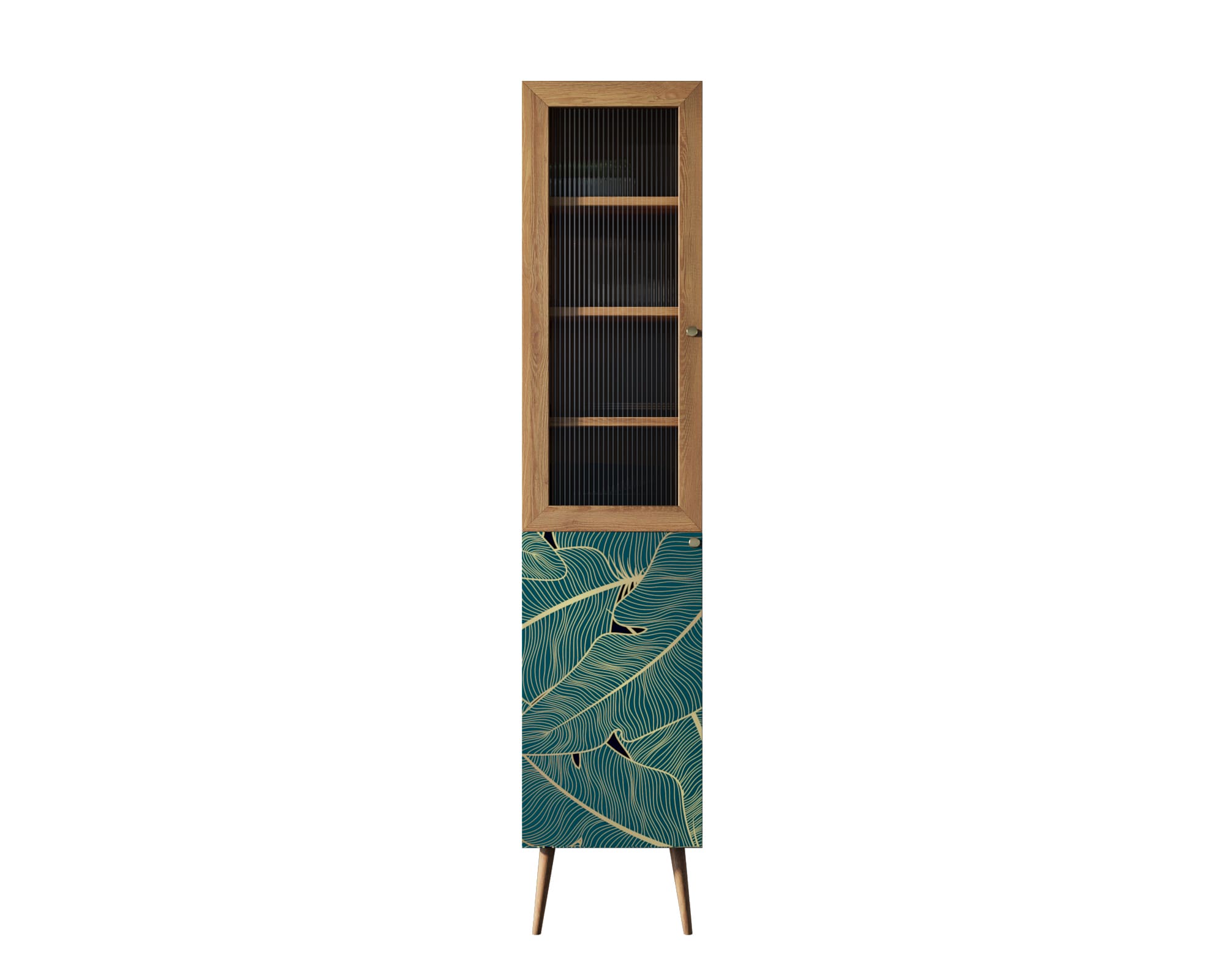 Узкий буфет "Berber" имеет лаконичный дизайн. Он выполнен в скандинавском стиле и прекрасно подойдет для столовой или кухни в темных тонах. Верхнее отделение скрыто за рифленой дверцей в раме из массива ясеня под морилкой, а нижнее имеет оформление с дизайнерским принтом черного и зеленого тонов. Узкий буфет "Berber" (принт 41) позволяет аккуратно и удобно хранить посуду, текстиль или другие вещи, при этом не занимая много места.