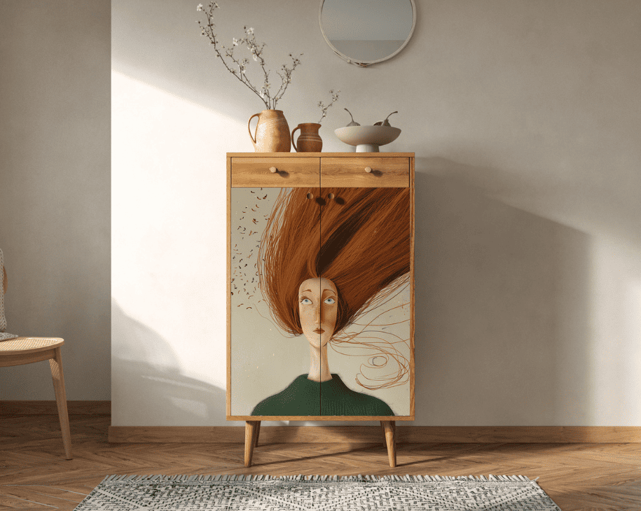 Комод "Berber Art Рыжая девушка" два ящика и дверки арт BB46/Art1