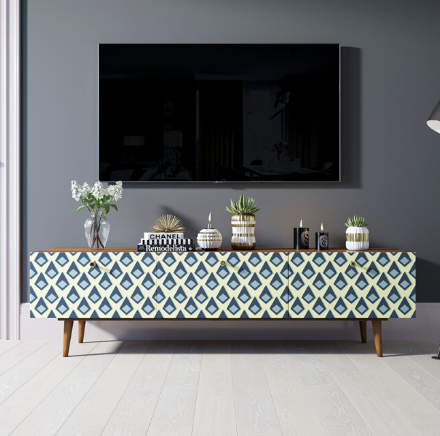 Комод под TV "Berber" имеет три глубоких и вместительных ящика на шариковых направляющих. Ширина комода 180 см, что позволяет достаточно эстетично смотреться с широкоформатными телевизорами. Яркий принт сделает комод акцентом любого интерьера.