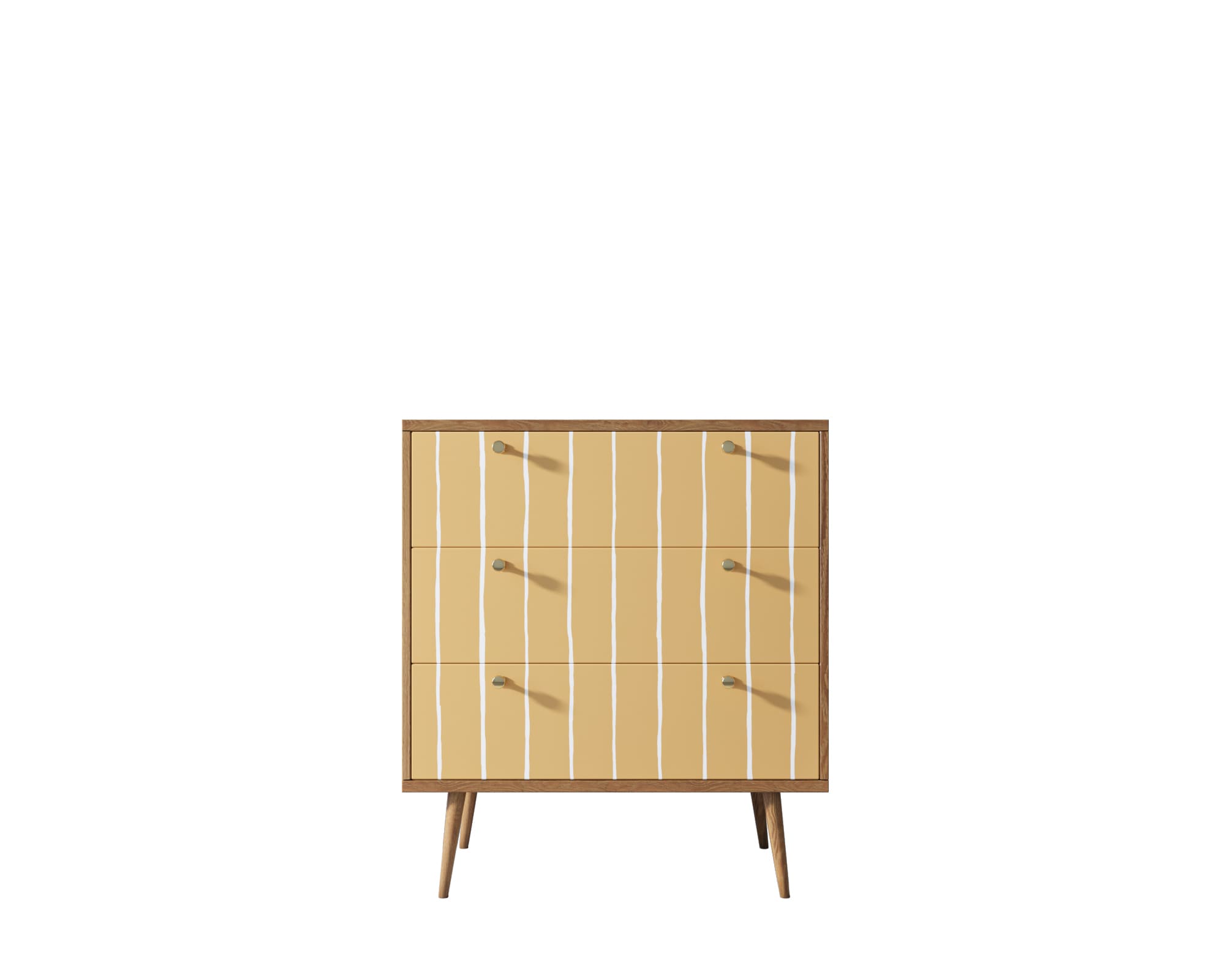 Малый комод "Berber" (43 принт), оформленный в скандинавском стиле, оснащен тремя прочными выдвижными ящиками. Они дополняются надежными металлическими направляющими, которые позволяют выдвигать ящики полностью.