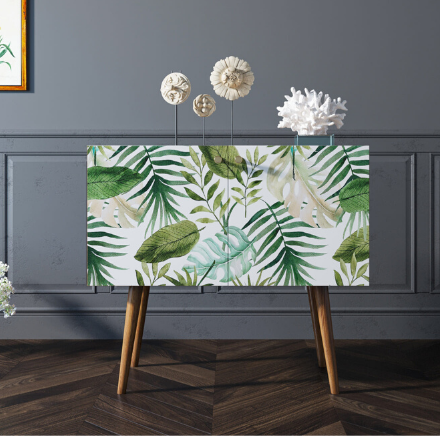Корпус и ящики изготавливаются из ЛДСП австрийской компании "EGGER". Ножки мы делаем из массива ясеня и крепим на стальную пластину, на дверях петли с доводчиком а на ящиках шариковые направляющие. Принт на фасады наносится принтером специальными УФ - чернилами.