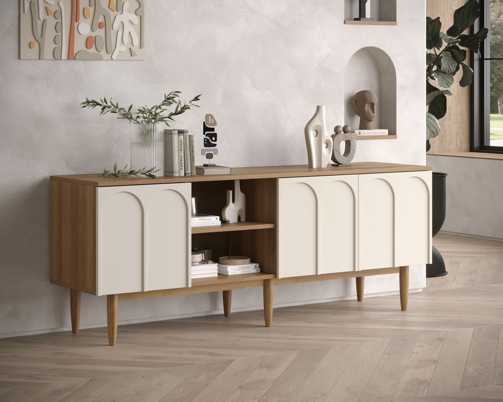 Корпус ЛДСП, фасад МДФ с гравировкой, ноги - массив березы