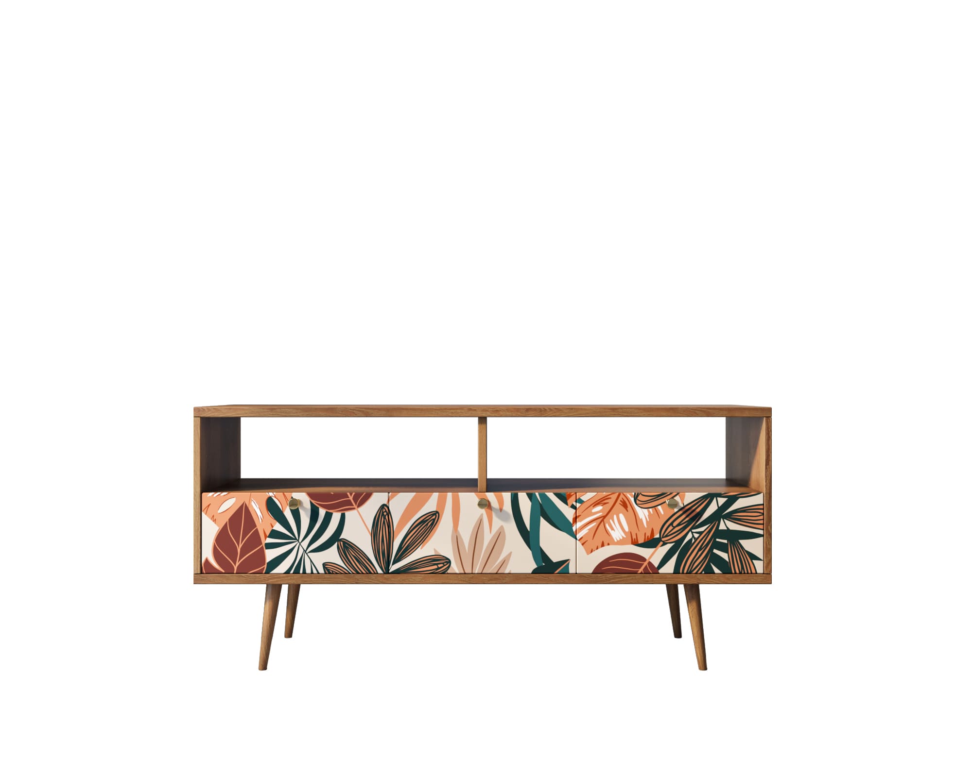 Удлиненная консоль "Berber" имеет три выдвижных ящика на металлических направляющих, а ниша разделена перегородкой. Можно использовать для хранения мелочей, цветов или она может быть базой для телевизора и приставки. Выбирайте подходящий принт и консоль станет яркой, акцентной вещью в интерьере.