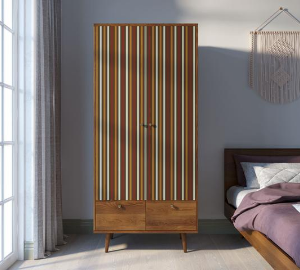 Двухстворчатый шкафы "Berber" имеет два глубоких, выдвижных ящика на шариковых направляющих и два отделения за дверками. Слева за дверью располагается съемная штанга, а справа три полки. Шкаф достаточно функционален и не займет много места, ведь ширина всего 90 см. Можно разместить в спальне или прихожей.