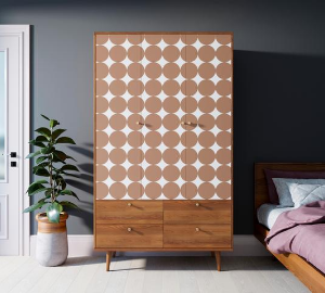 Трехстворчатый шкаф "Berber" имеет четыре вместительных, выдвижных ящика на шариковых направляющих и два больших отделения за дверками. Слева за дверкой располагаются три полки, а справа отделение со съемной штангой. Шкаф достаточно функционален и при своих компактных размерах, в ширину всего 115 см, способен вместить достаточное количество вещей.