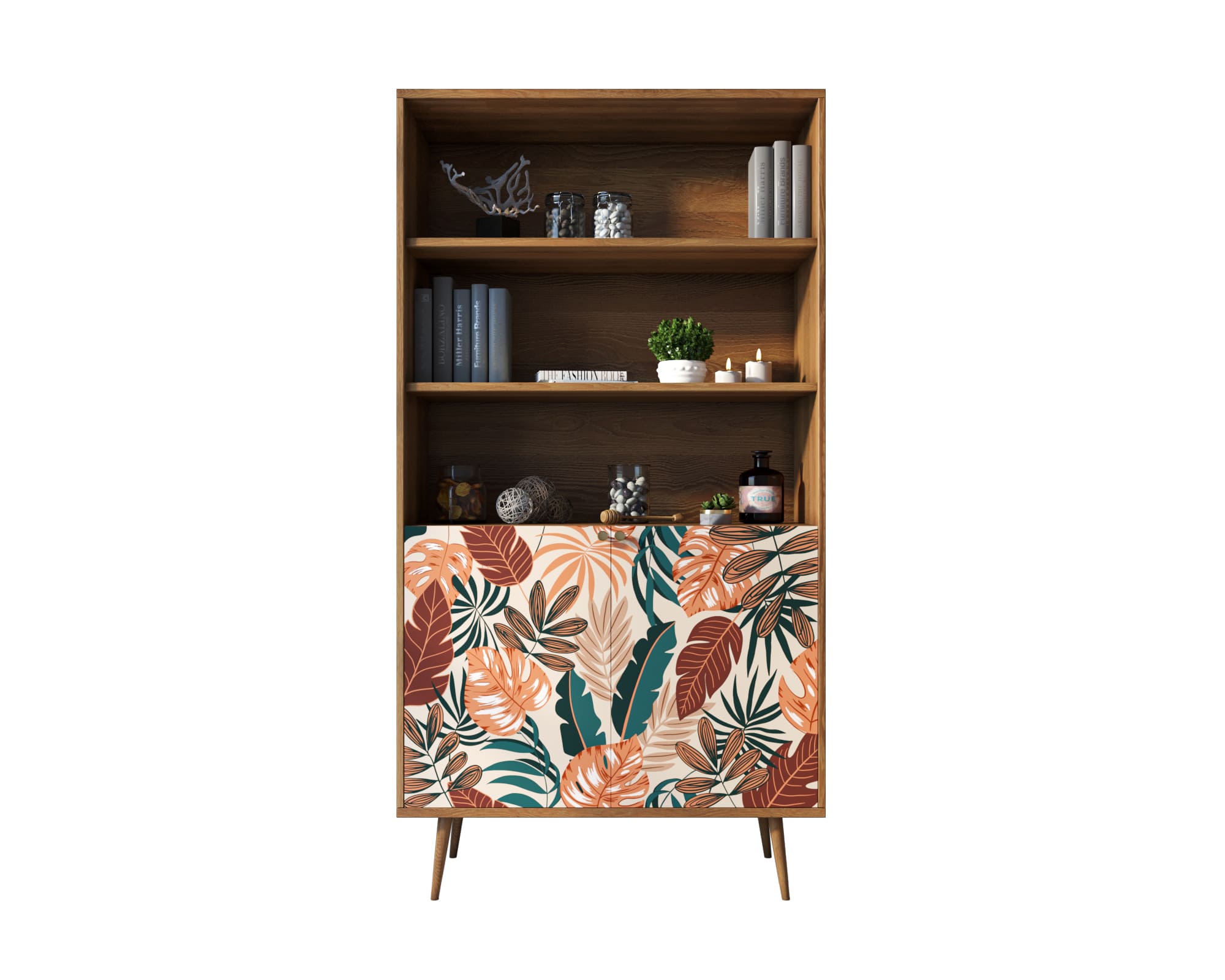 Стеллаж "Berber" визуально разделен на две функциональные части. Верхняя - с открытыми полками для красивого декора, книг и полезной мелочевки. Низ - за закрытыми принтовыми фасадами для хранения вещей, скрытых от глаза. Подберите подходящий именно вам принт и украсьте дизайн вашего жилого пространства.