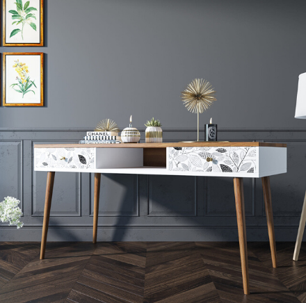 Рабочий стол "Berber" отлично впишется в детскую комнату или рабочий кабинет, но здесь стоит подобрать правильный принт. Два вместительных ящика на металлических направляющих, ноги из массива ясеня окрашенные итальянской морилкой, ниша под бумаги и мелочи, и все это в сочетании со скандинавским дизайном придадут интерьеру особый акцент.